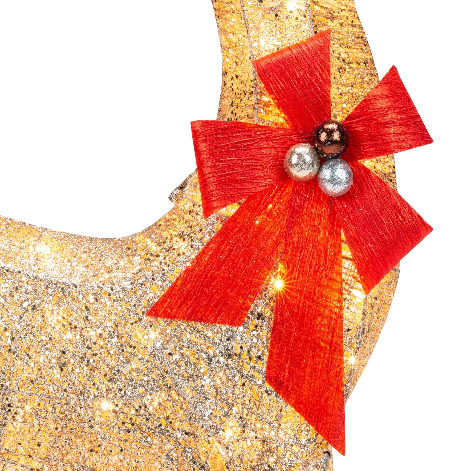 ELEGANT AND REALISTIC: Made with glittery champagne gold coloring and a festive red bow, plus realistic details such as tall antlers and a sophisticated stance for eye-catching appeal