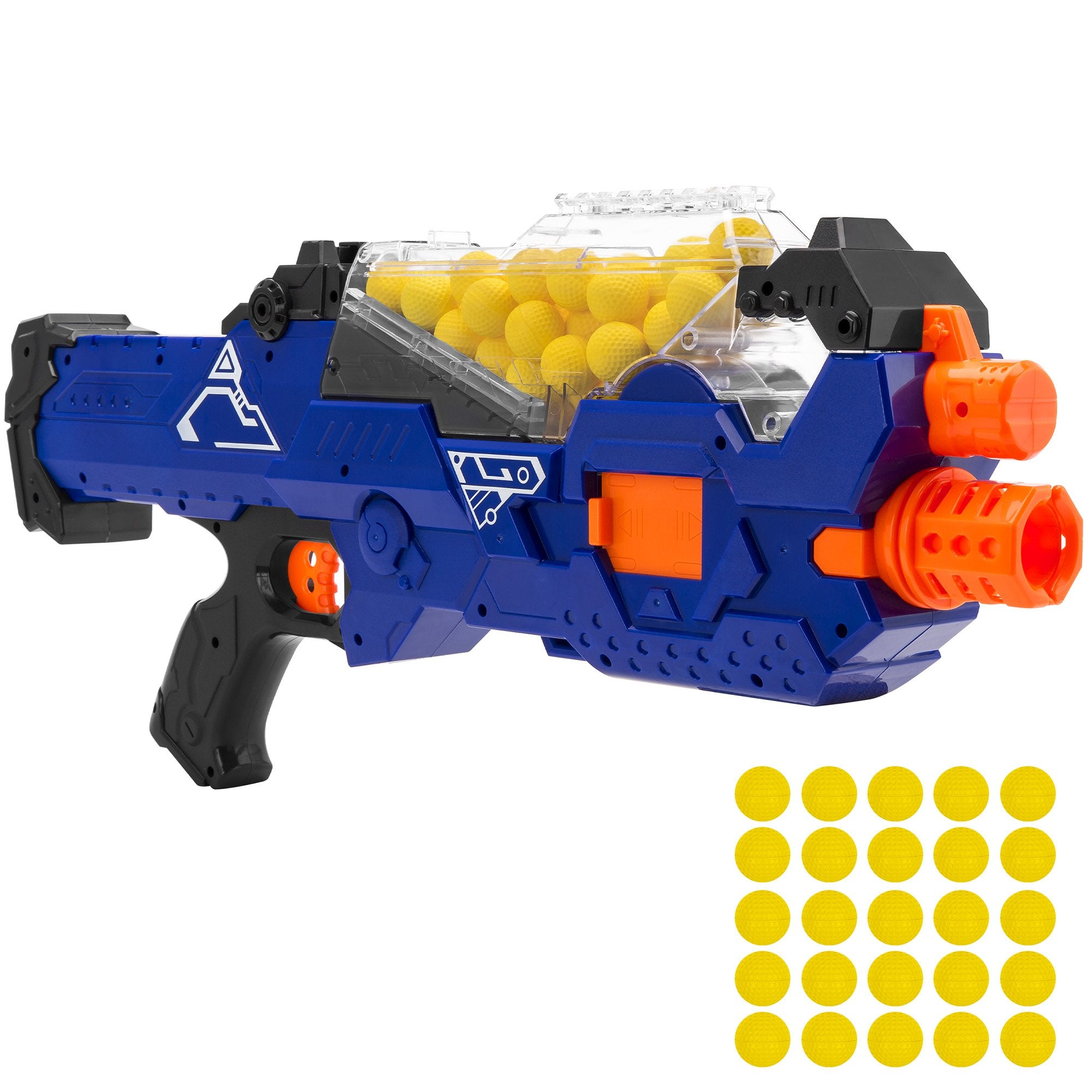 Electric Soft Foam Ball Rapid Fire Blaster Toy w/ Hopper Feeder, 20 Balls